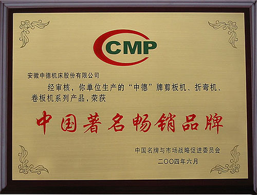 中德牌機(jī)床獲得“中國著名暢銷品牌”榮譽(yù)稱號(hào)