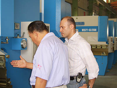 2005年6月23日上午,位于沙特阿拉伯首都利雅得市的沙特納美拉空壓機(jī)廠廠長(zhǎng)阿貝德·塔巴拉等一行來(lái)我公司參觀考察,阿貝德先生此行主要來(lái)考察我公司折彎?rùn)C(jī)、剪板機(jī)產(chǎn)品,考察中對(duì)我公司產(chǎn)品外觀、結(jié)構(gòu)均表示滿(mǎn)意并與我公司達(dá)成進(jìn)一步合作的意向!