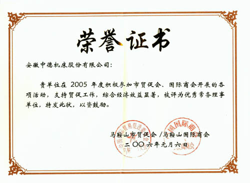 我公司獲2005年度市貿促會、國際商會優(yōu)秀常務理事單位