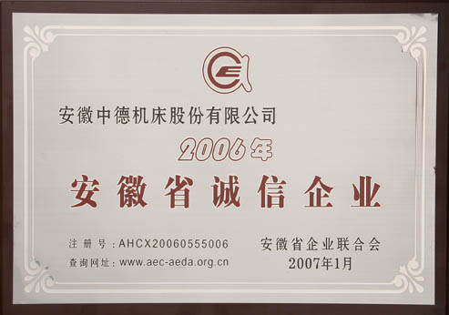 我公司獲得2006年度“安徽省誠信企業(yè)”稱號(hào)