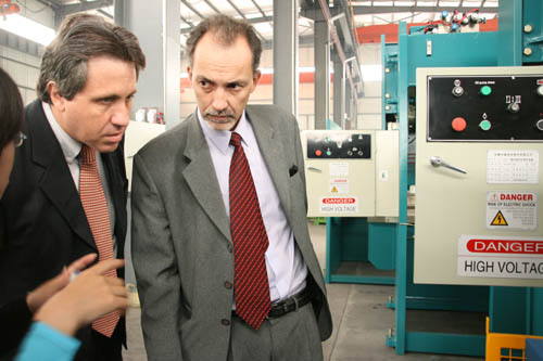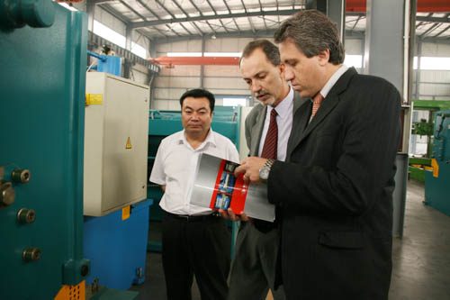 Aldo Strobbe Turk先生和Michael Can先生分別是秘魯一家專業(yè)機(jī)械進(jìn)出口公司的采購(gòu)經(jīng)理和銷(xiāo)售經(jīng)理。他們此行的目的是對(duì)我公司進(jìn)行實(shí)地參觀考察,并尋求以中德在秘魯獨(dú)家代理的形式與中德達(dá)成合作意向。公司領(lǐng)導(dǎo)熱情地接待了兩位外商。公司領(lǐng)導(dǎo)首先給秘魯客商介紹了我公司近年來(lái)產(chǎn)品的研發(fā)、生產(chǎn)、銷(xiāo)售情況以及我公司產(chǎn)品在國(guó)內(nèi)外市場(chǎng)的影響和地位。隨后陪同外商參觀了成品車(chē)間并現(xiàn)場(chǎng)演示運(yùn)行了機(jī)器,裝配車(chē)間,大件車(chē)間和零件倉(cāng)庫(kù)。參觀完后,兩位秘魯客商都對(duì)我公司產(chǎn)品的機(jī)型型號(hào)、生產(chǎn)制造技術(shù)、零配件等諸多方面非常滿意,并愿以在秘魯獨(dú)家代理的形式與中德建立長(zhǎng)期穩(wěn)定的合作關(guān)系。
