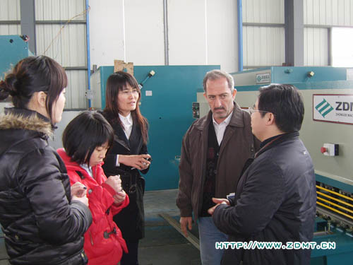 Haiyl A.AI Rawy先生對(duì)中國(guó)機(jī)械行業(yè)尤其是剪板機(jī)折彎?rùn)C(jī)非常的熟悉,他表示他們非常重視機(jī)器的質(zhì)量,來中德也是由于中德機(jī)器在海內(nèi)外都享有良好的聲譽(yù)。參觀前,Haiyl A.AI Rawy還特意詢問我們?cè)诎⒙?lián)酋有沒有代理,當(dāng)公司領(lǐng)導(dǎo)回答說目前還沒有時(shí),他釋然一笑,表示希望能夠與中德建立良好的合作關(guān)系。在中德的成品車間,Haiyl A.AI Rawy先生聽取了我公司營(yíng)狀況及近遠(yuǎn)期規(guī)劃的介紹,并就每一款機(jī)床的詳細(xì)情況進(jìn)行了介紹,重點(diǎn)詢問了其性能及售價(jià)等。他對(duì)我們的數(shù)控折彎?rùn)C(jī)尤其感興趣,要求當(dāng)場(chǎng)進(jìn)行測(cè)試。Haiyl A.AI Rawy特意讓自己的助理拍下了整個(gè)操作過程,在我公司工程師的幫助下,Haiyl A.AI Rawy還進(jìn)一步了解了折彎?rùn)C(jī)數(shù)控系統(tǒng)的編程方面的問題。