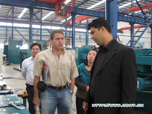 稍事休息,Atila Deniz先生和Mr.Tunc便帶著迫切的心情參觀了中德的各個車間。從裝備車間到大件車間,至電焊車間再到金工車間??腿藢χ械庐a(chǎn)品表現(xiàn)出濃厚的興趣,提出的問題也是相當專業(yè)、細致。比如,機床使用材料的鋼號,數(shù)控系統(tǒng)的工作效率等等,無不體現(xiàn)出一個機床消費成熟國的高標準。